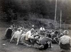 Der "Bund Neudeutschland" (ND) wurde 1919 als "Verband katholischer Schüler Höherer Lehranstalten" ins Leben gerufen. Er gliederte sich während der Weimarer Jahre reichsweit in fünf "Marken" und 39 "Gaue" und mehreren hundert Gruppen, denen 1932 insgesamt 21.441 Jungen angehörten. Wenn an Mitgliederzahl auch überschaubar, war Neudeutschland dennoch ein wichtiger Jugendverband, der auf viele katholische Jugendliche ausstrahlte und sie prägte. Andererseits passte sich der Bund seinerseits seit der zweiten Hälfte der 1920er Jahre immer stärker "bündischen" Lebensformen und Verhaltensweisen an, um so für die Heranwachsenden attraktiv zu bleiben. Seit 1933/34 gerieten Bund und einzelne seiner Gruppen immer stärker in Konflikt mit der Totalität beanspruchenden Hitlerjugend, Der ND wurde zusehends zurückgedrängt, bis im Juli 1939 das endgültige Verbot ausgesprochen wurde.[1]