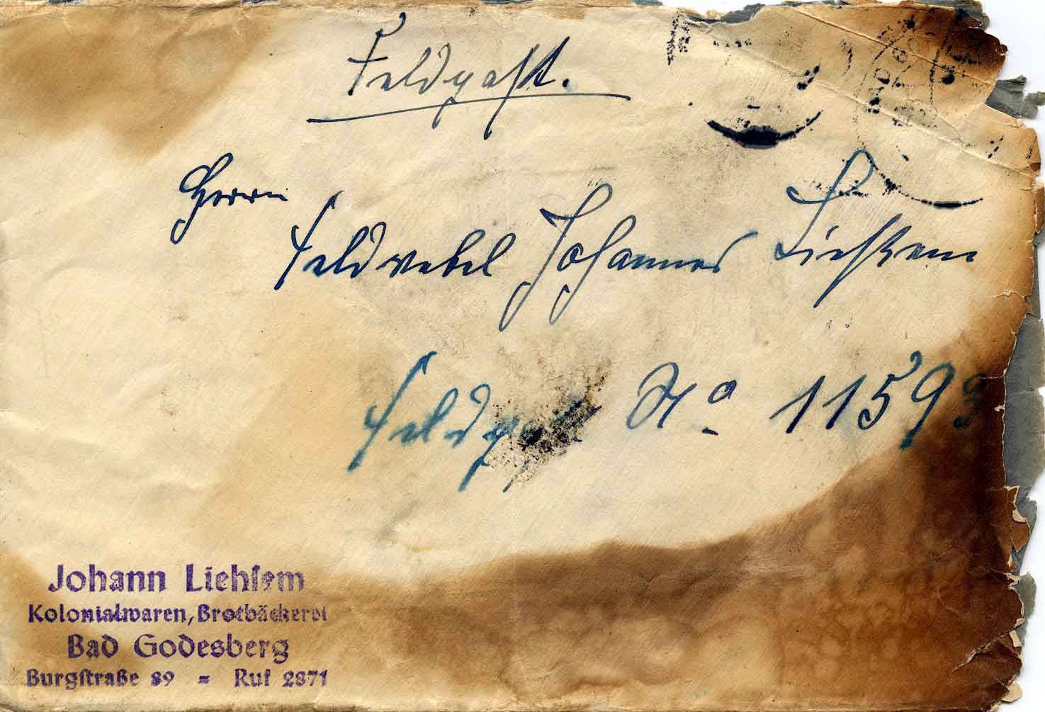 Dabei kann bzw. muss sich Dorothea Hölzer allein auf die Briefe ihres Vaters konzentrieren, denn die Schreiben ihrer Mutter sind – bis auf wenige Ausnahmen – ebenso verloren gegangen wie die Korrespondenz zwischen Hannes Ließem und dessen Eltern. Dabei bleiben die Gründe für diesen Totalverlust bis heute ebenso ungeklärt wie die Tatsache, dass für das Jahr 1942 auch von Seiten des Vaters praktisch kein Brief erhalten ist. Verwundungen und Lazarettaufenthalte sind in dieser Hinsicht mögliche, aber sehr unsichere und unbefriedigende Erklärungen. Die Briefe an die Front werden wohl aus anderen Gründen nicht den Weg nach Godesberg zurück gefunden haben. Vielleicht sind sie aber auch als Folge des Absturzes der Sanitätsmaschine verbrannt, was zwei überlieferte Briefumschläge mit Brandspuren nahelegen.