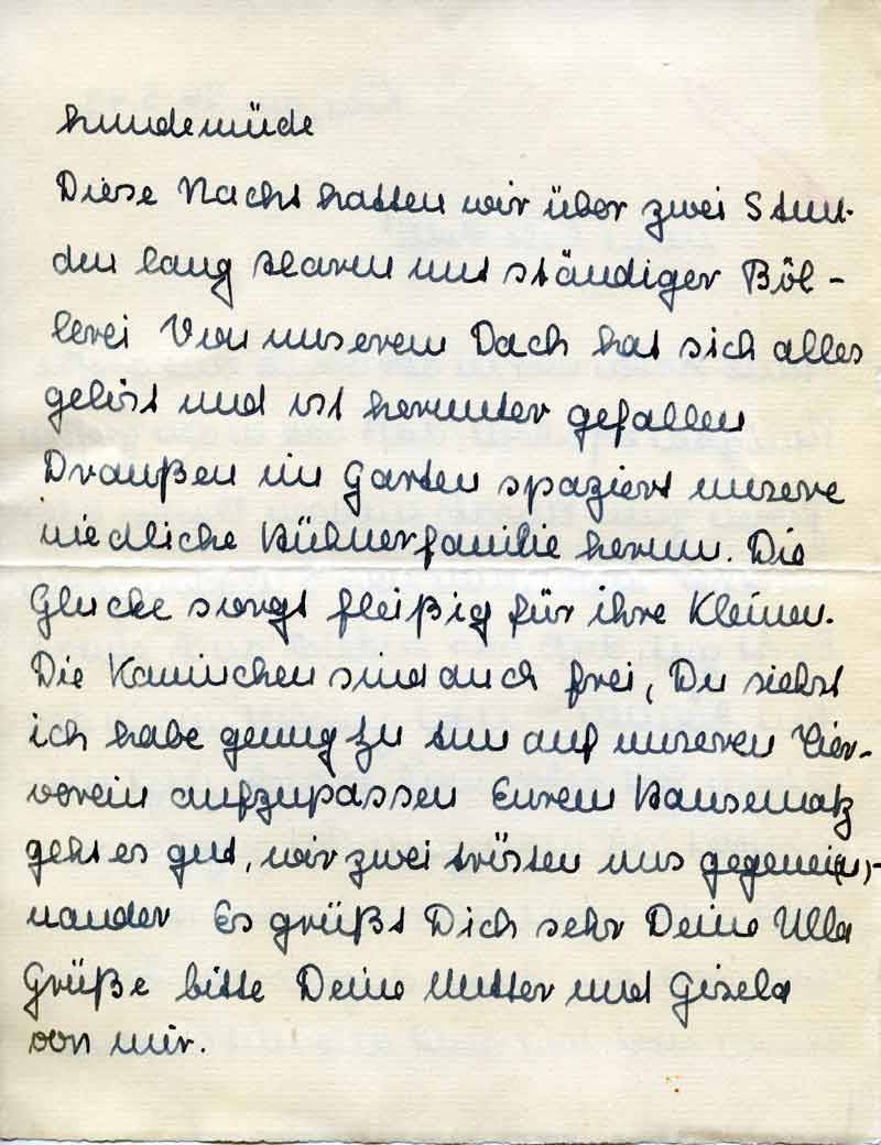 Heute haben wir in der Schule eine große Neuigkeit erfahren, daß wir in den großen Ferien zum Einsatz müssen. Vorher oder nachher bekommen wir 3 Wochen Ferien. Es ist gut, daß wir endlich auch etwas tun können – man zwiebelt uns in der letzten Zeit sehr, weil es sich jetzt entscheidet, ob man zum Abi zugelassen wird oder nicht. Wir schreiben Arbeiten über Arbeiten, haben dazwischen häufig Alarm und wir sind alle miteinander