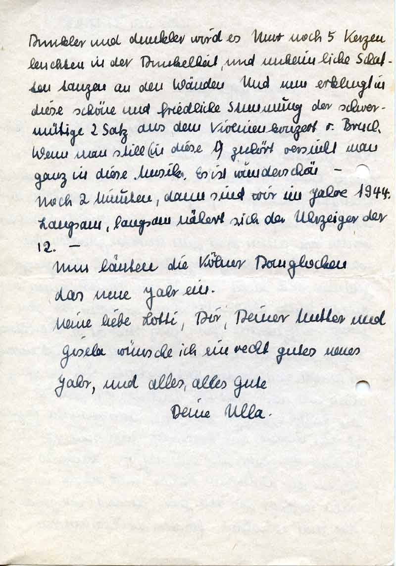 Ursula Lindemann an Lotti, 31. Dezember 1943