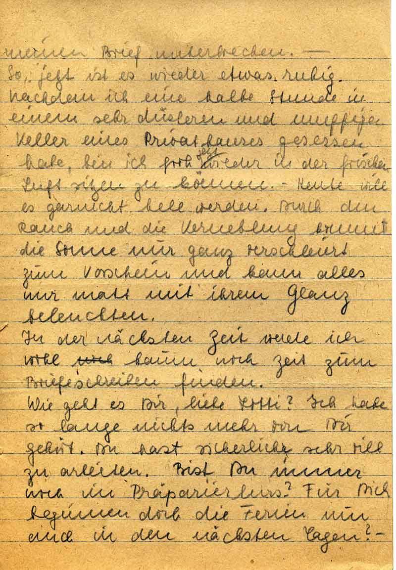 Wie geht es Dir, liebe Lotti? Ich habe so lange nichts mehr von Dir gehört. Du hast sicherlich sehr viel zu arbeiten. Bist Du immer noch im Präparierkurs? Für Dich beginnen doch die Ferien nun auch in den nächsten Tagen? –