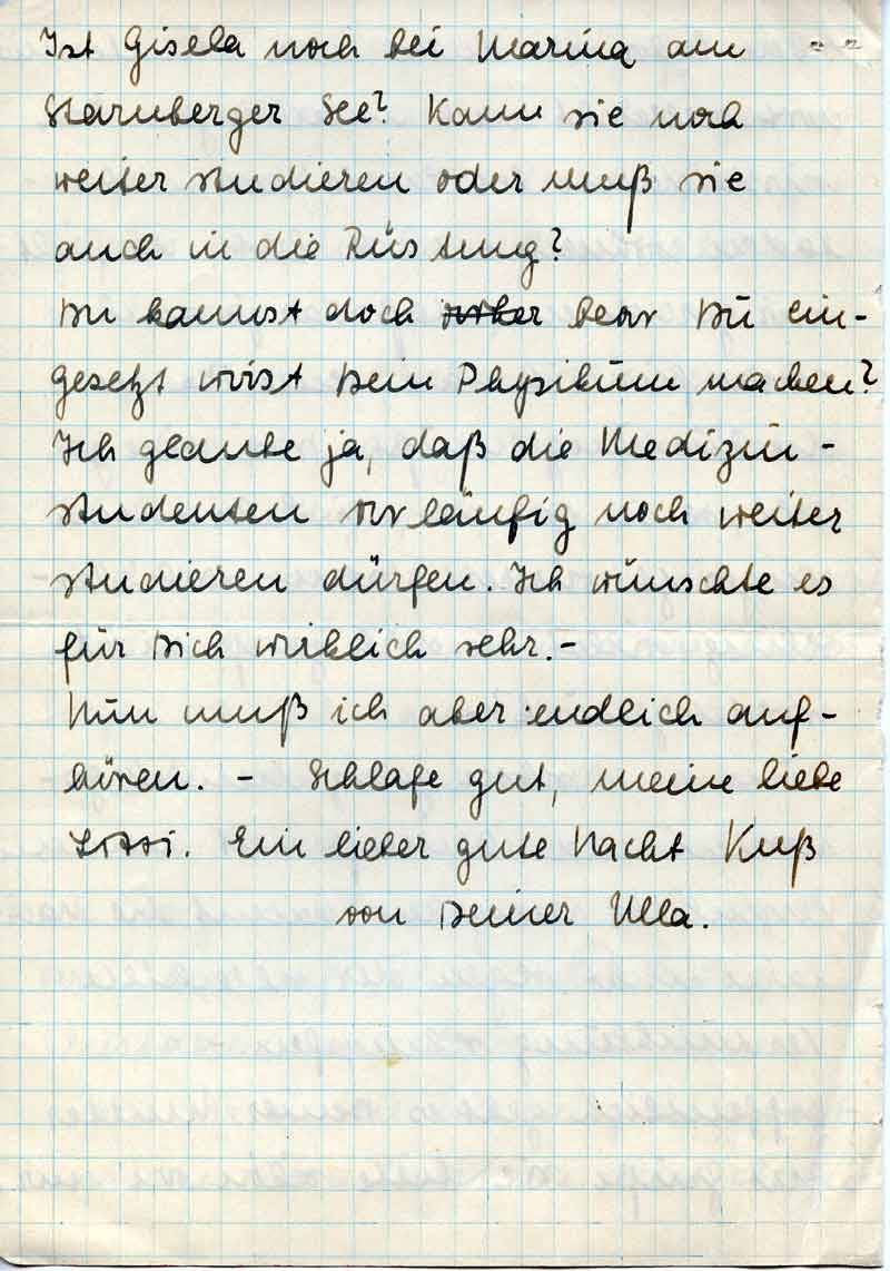 Ist Gisela noch bei Marina am Starnberger See? Kann sie noch weiter studieren oder muß sie auch in die Rüstung?