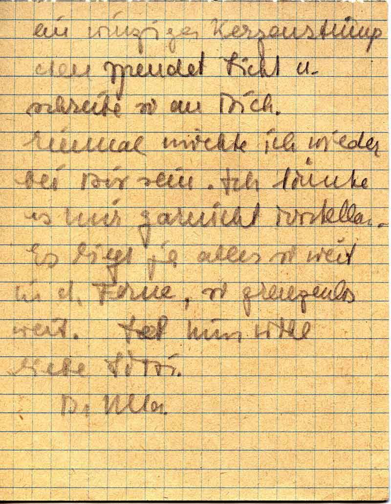 es trifft ja so viele, ach wir dürfen nicht verzagen, wenn sich auch alles uns entgegenstellt. – Ich kann nicht mehr schreiben, es ist so arg kalt und ich bin sterbensmüde.