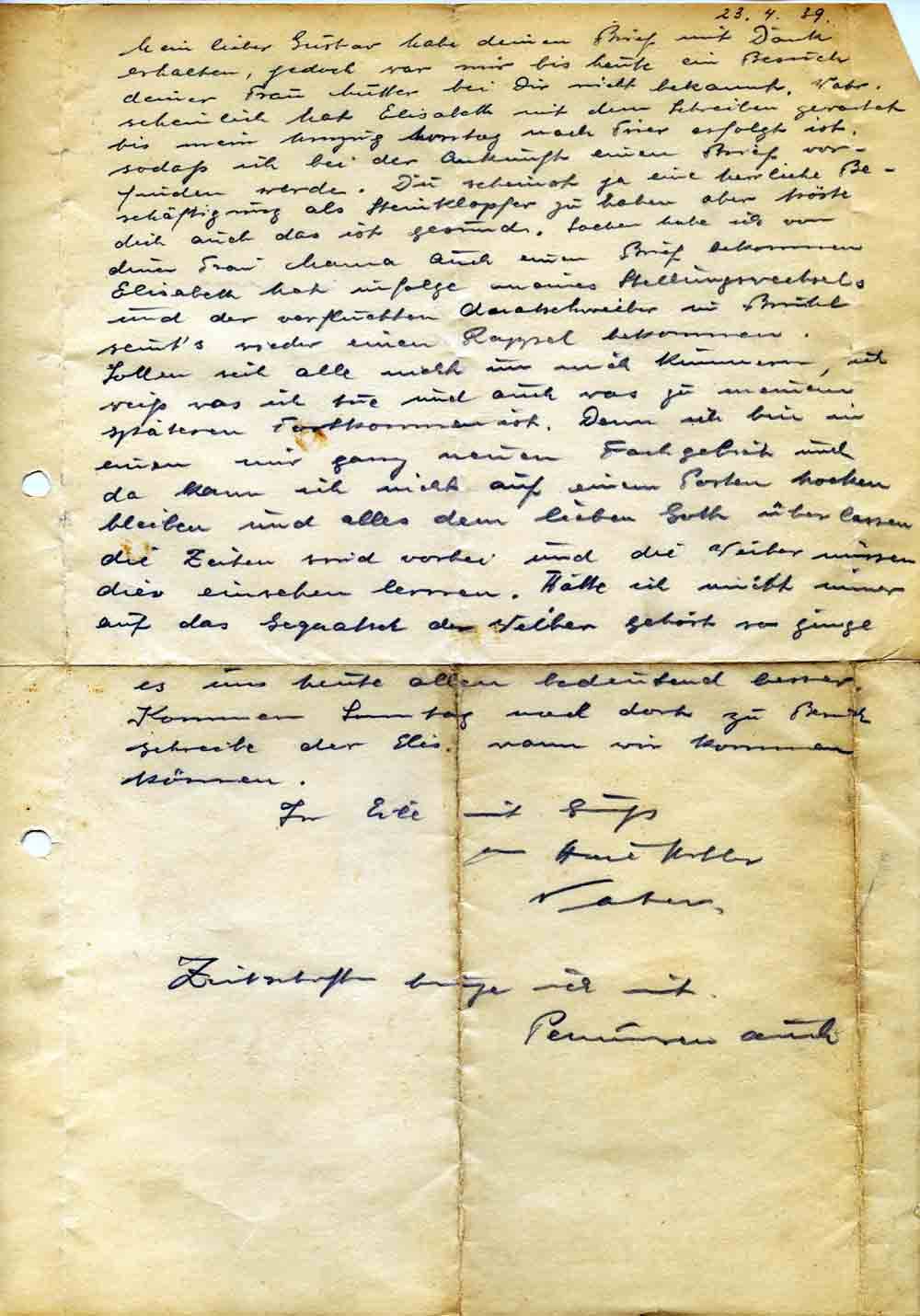 Toni Roos an Sohn Gustav, 23. April 1939