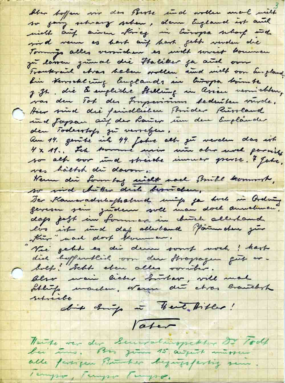 Toni Roos an Sohn Gustav, AnfangJuli 1939