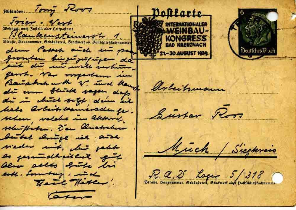 Toni Roos an Sohn Gustav, 4. Juli 1939