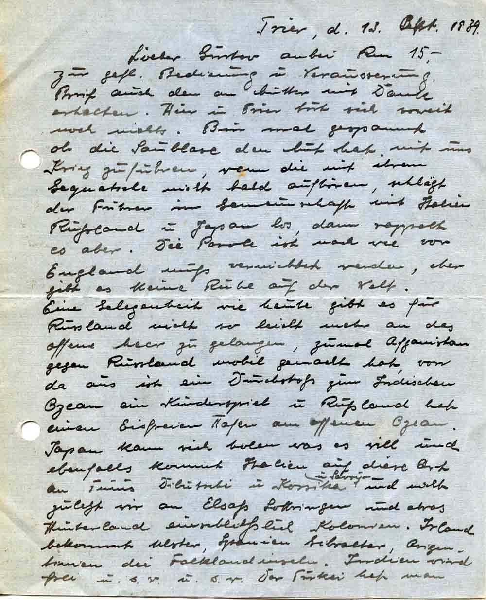 Trier, d. 13. Okt. 1939.