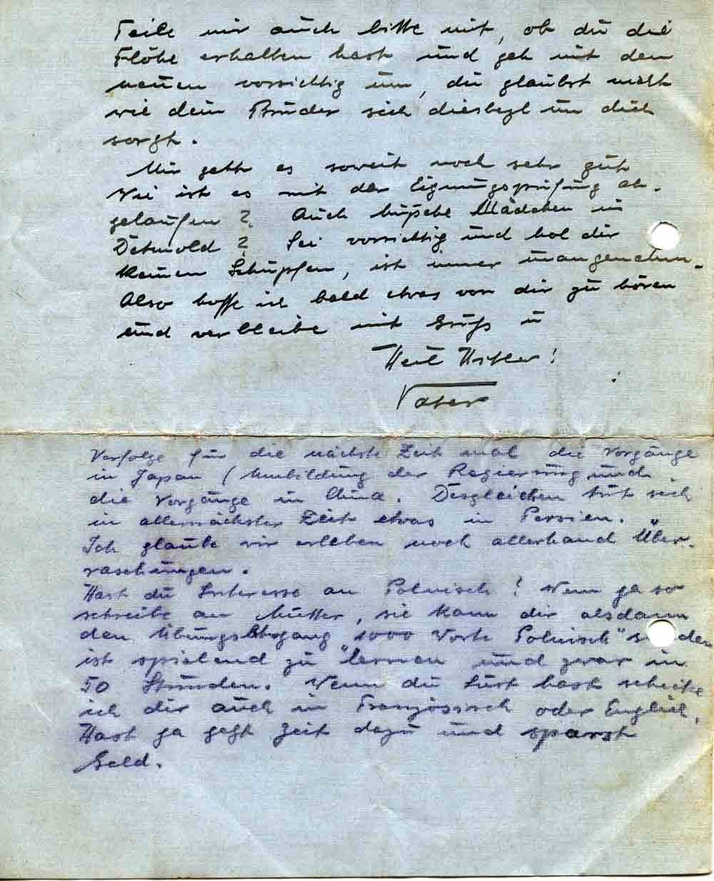 Hast du Interesse an Polnisch? Wenn ja so schreibe an Mutter, sie kann dir alsdann den Übungslehrgang „1000 Worte Polnisch“ senden ist spielend zu lernen und zwar in 50 Stunden. Wenn du Lust hast schicke ich dir auch in Französisch oder Englisch. Hast ja jetzt Zeit dazu und sparst Geld.