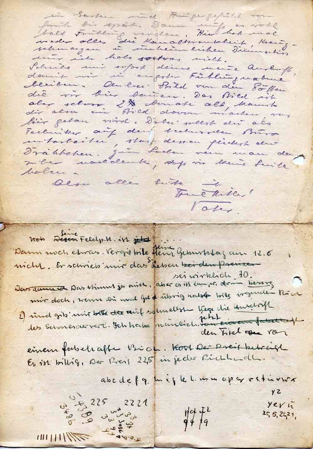 Dann noch etwas. Vergiß bitte Heinz Geburtstag am 12.6. nicht. Er schrieb mir das S-Leben
