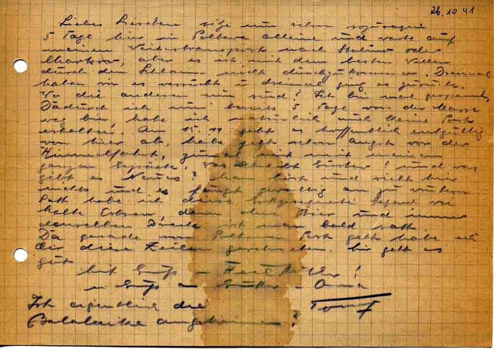 Toni Roos an seine Frau Elisabeth, 26. Oktober 1941