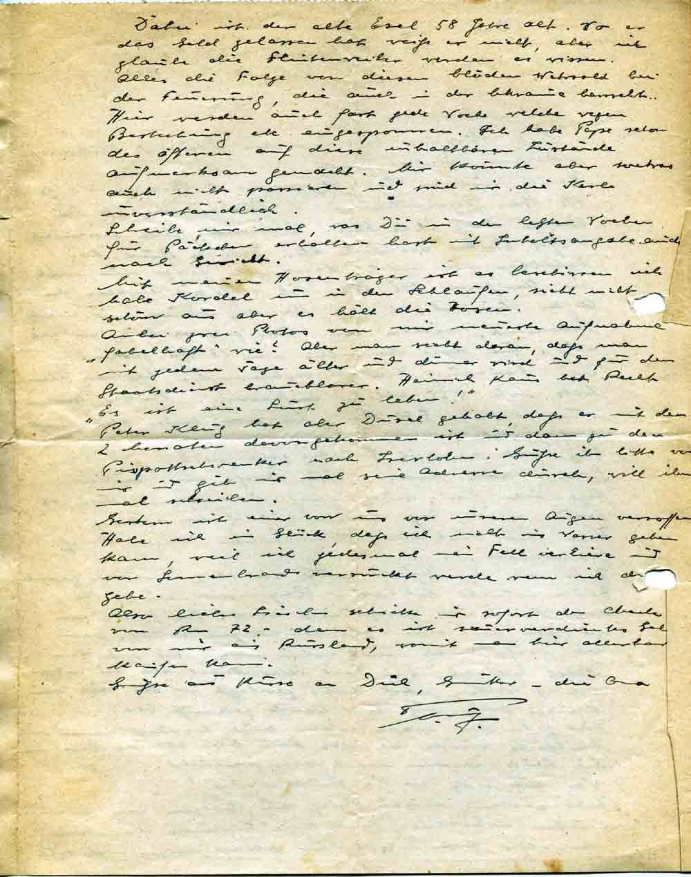 Schreibe doch mal. Die Briefe von Gustav lege ich bei, sind ganz interessant und es freut mich, daß er den Mut nicht verliert. Habe ihm auch vorgestern einen langen Brief geschrieben.
