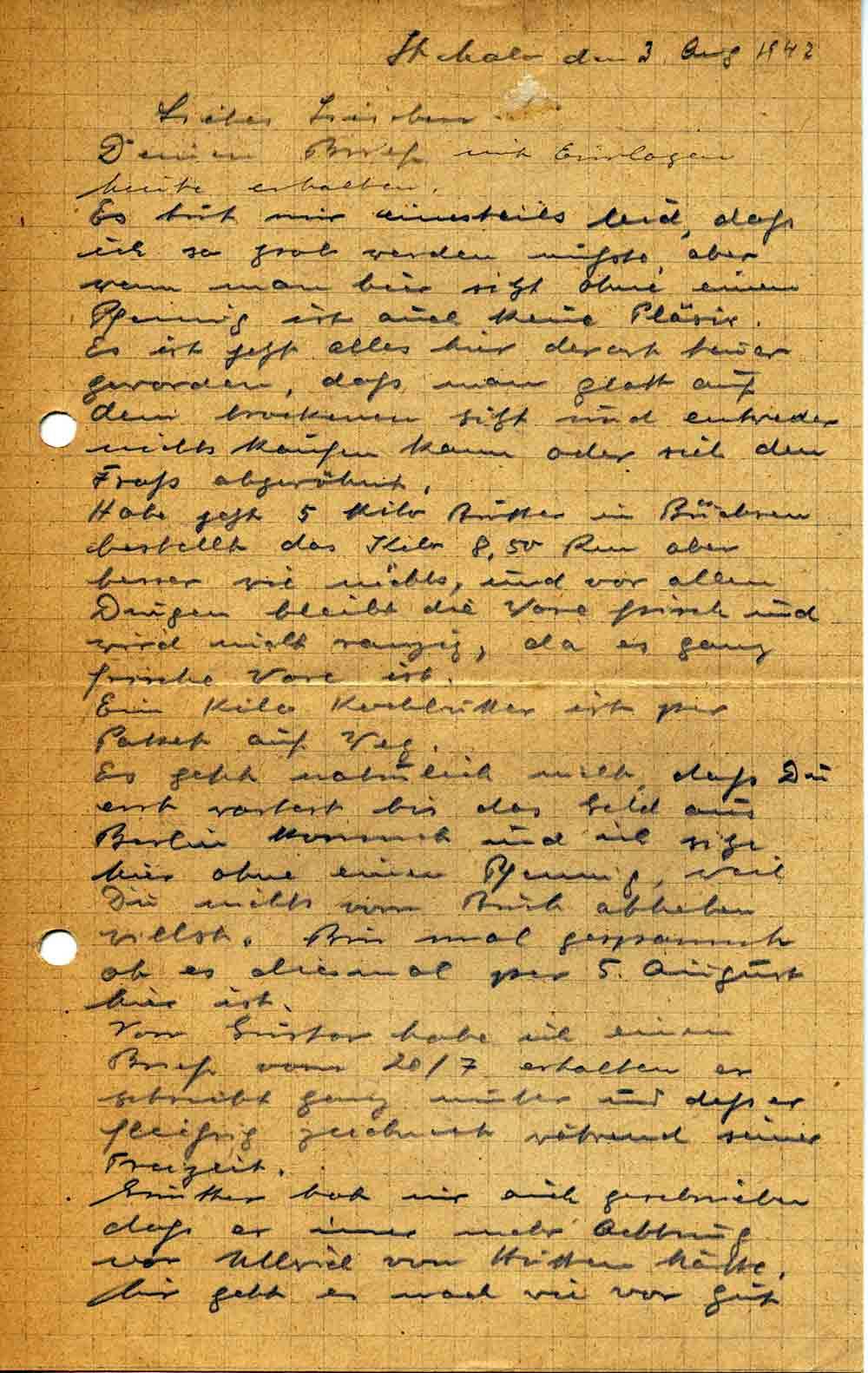 Toni Roos an seine Frau Elisabeth, 3. August 1942