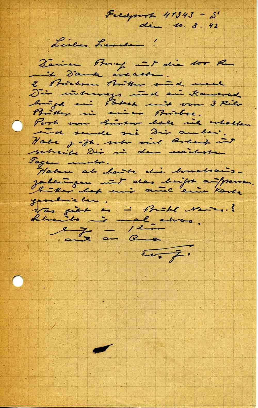 Toni Roos an seine Frau Elisabeth, 10. August 1942