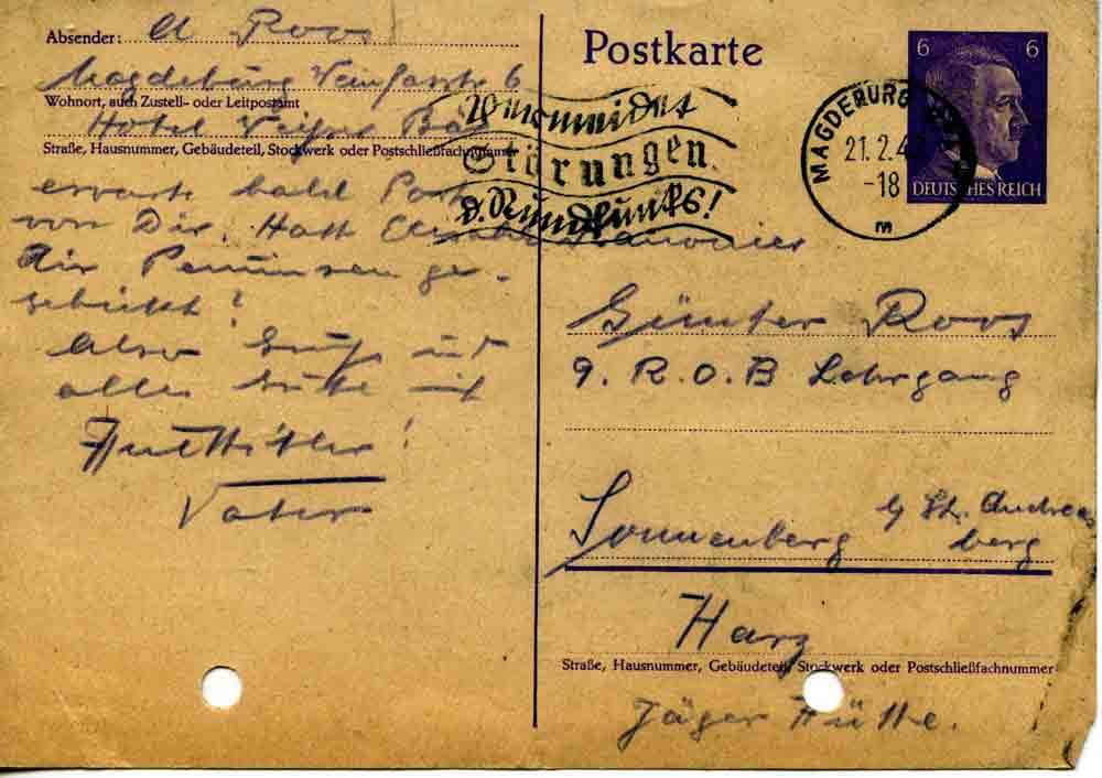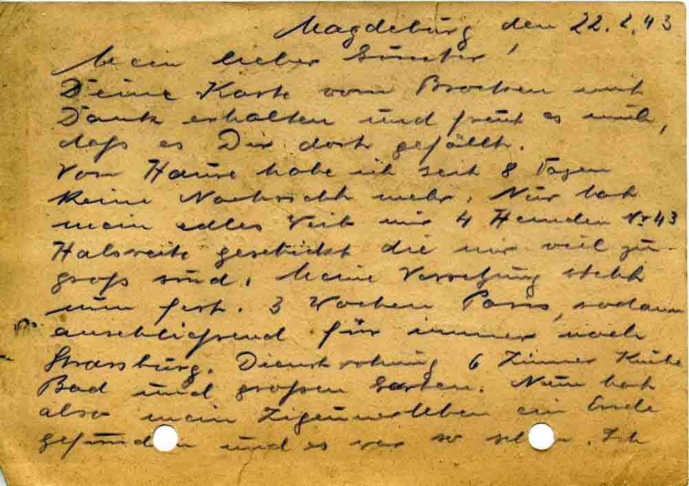Toni Roos an Sohn Günther, 22. Februar 1943