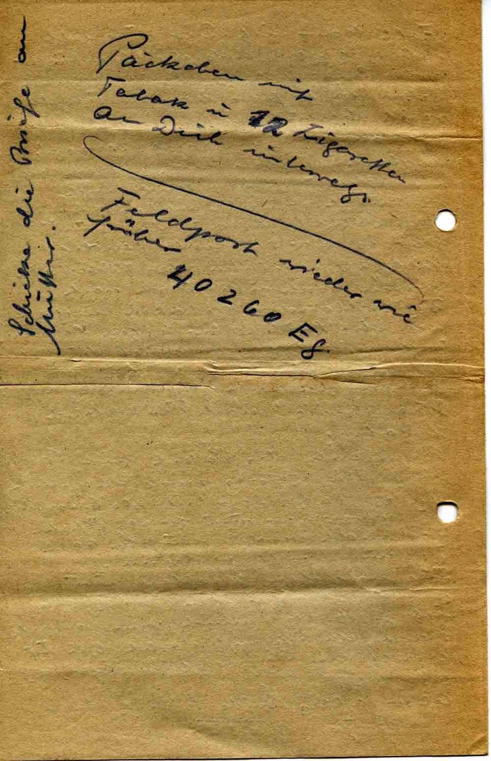 Tue mir den Gefallen und sende Mutter den Brief, da ich z. Zt. verdammt wenig schreiben kann, da ich überlastet bin und gerade ein Kurier (ohne Gepäck) abgeht.