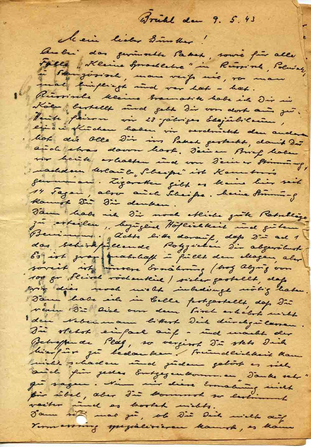 Eltern Roos an Sohn Günther, 9. Mai 1943
