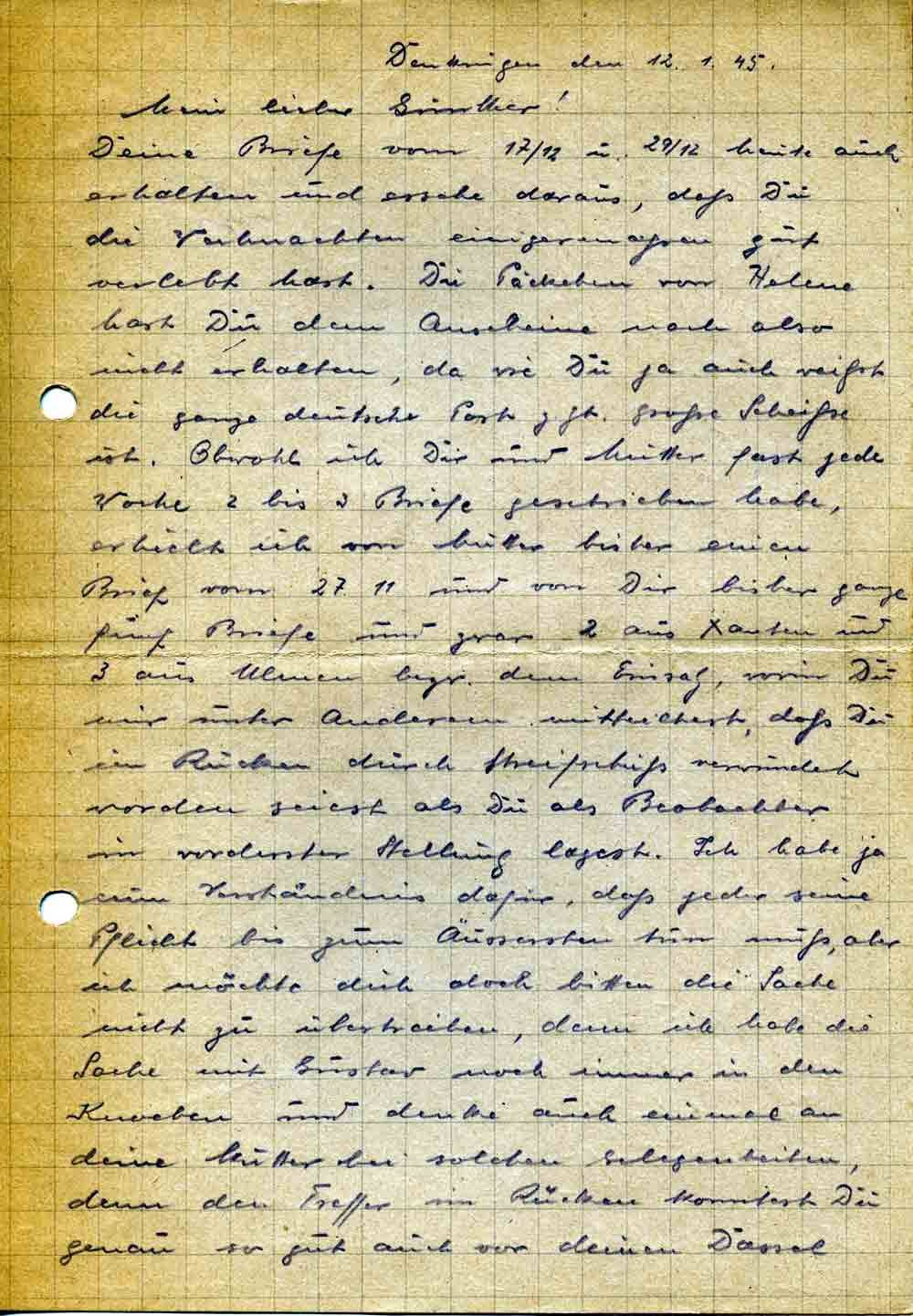 Toni Roos an Sohn Günther, 12. Januar 1945