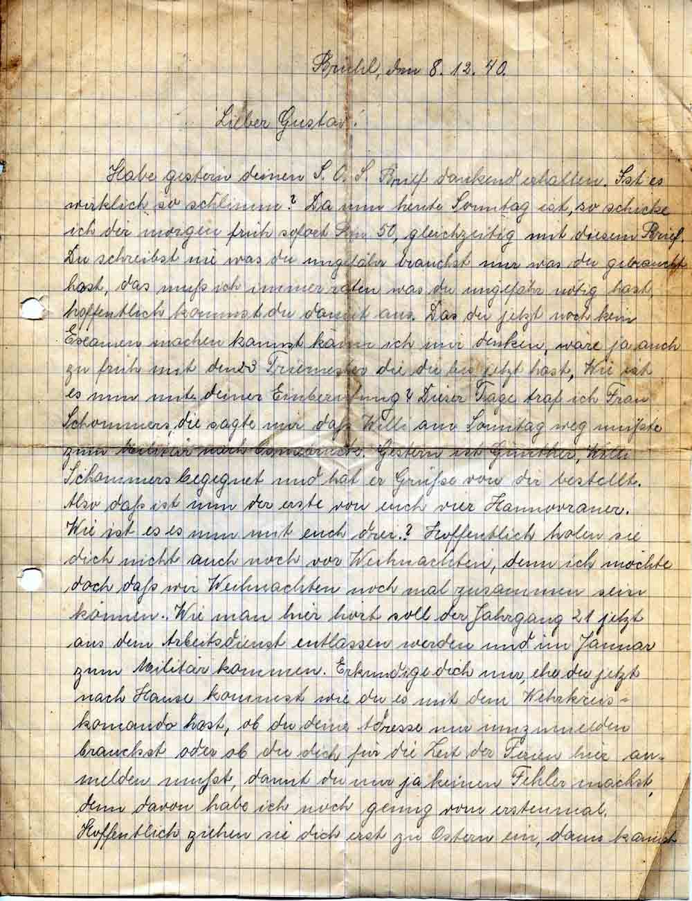Elisabeth Roos an Sohn Gustav, 8. Dezember 1940