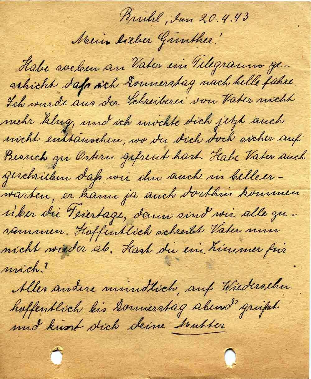 Elisabeth Roos an Sohn Günther, 20. April 1943