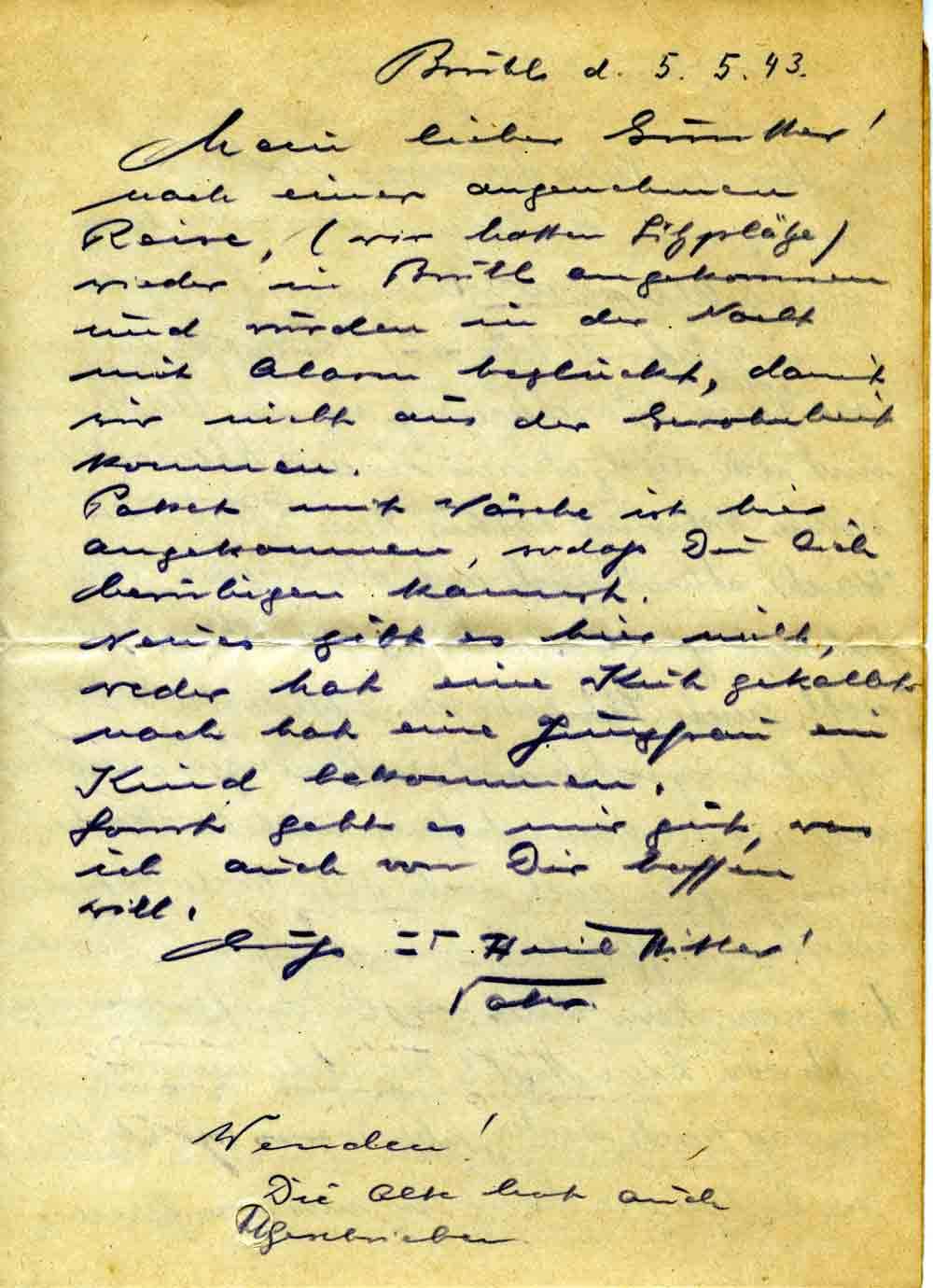Elisabeth und Toni Roos an Sohn Günther, 5. Mai 1943