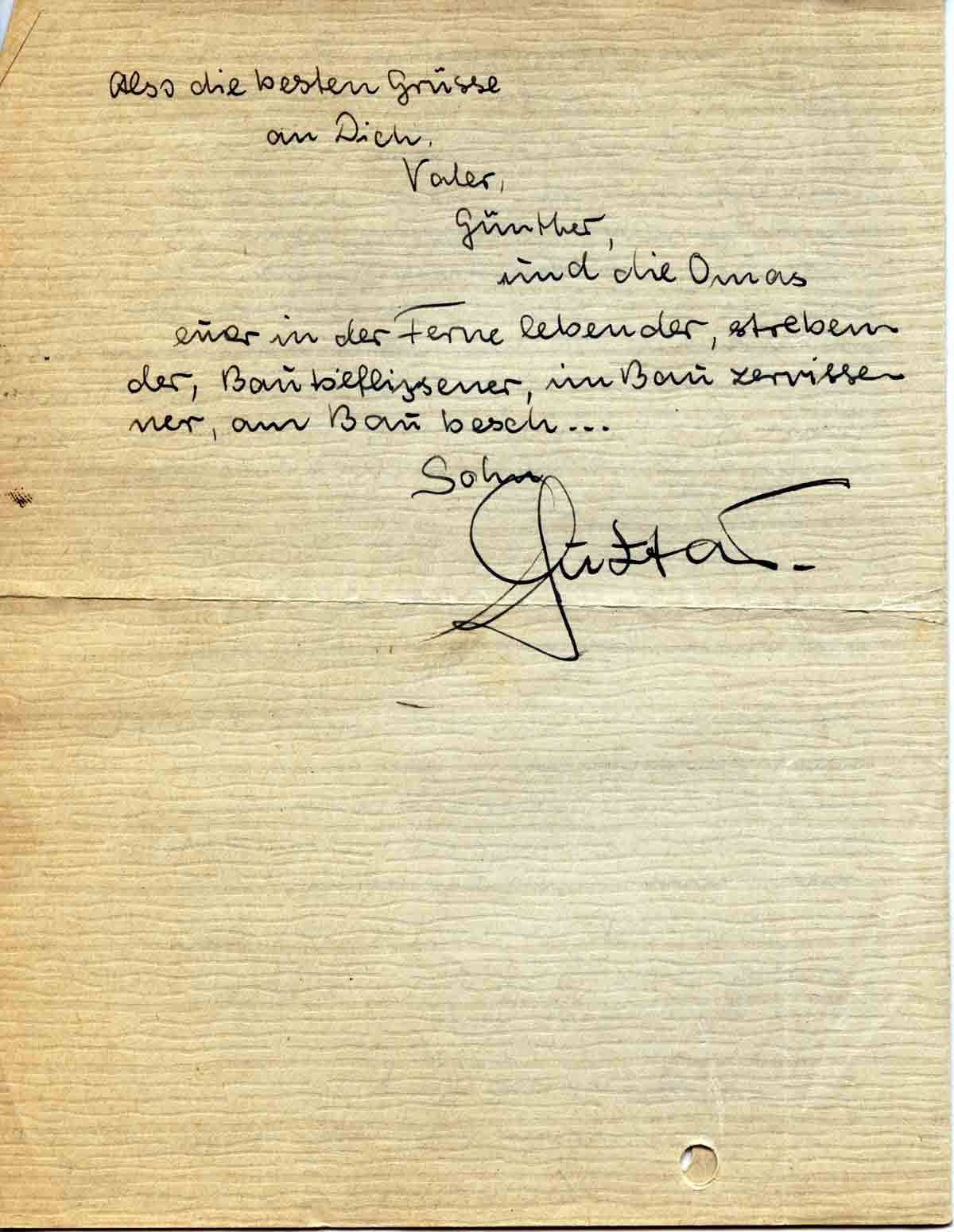 Jetzt will ich Schluss machen. Schicke den Brief auch sofort Vater! Meine Adresse ist jetzt