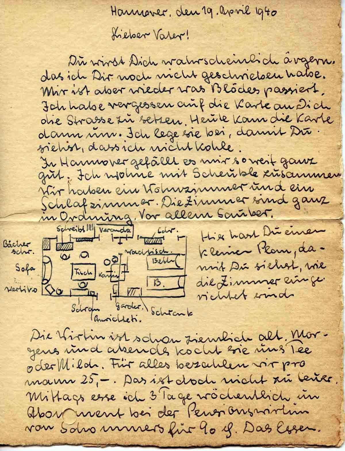 In Hannover gefällt es mir soweit ganz gut. Ich wohne mit Scheuble zusammen. Wir haben ein Wohnzimmer und ein Schlafzimmer. Die Zimmer sind ganz in Ordnung. Vor allem sauber.