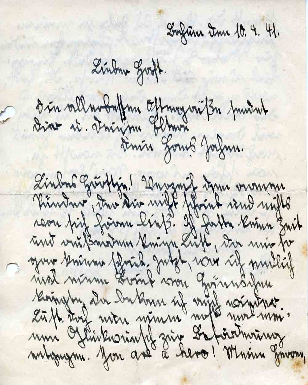 Hans-Jochen Kraatz an Horst Schmitt, 10. April 1941