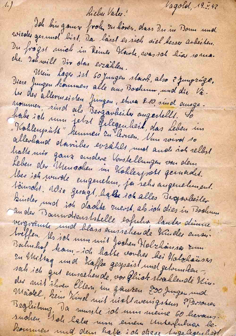 Horst Schmitt an seinen Vater, 19. Mai 1942