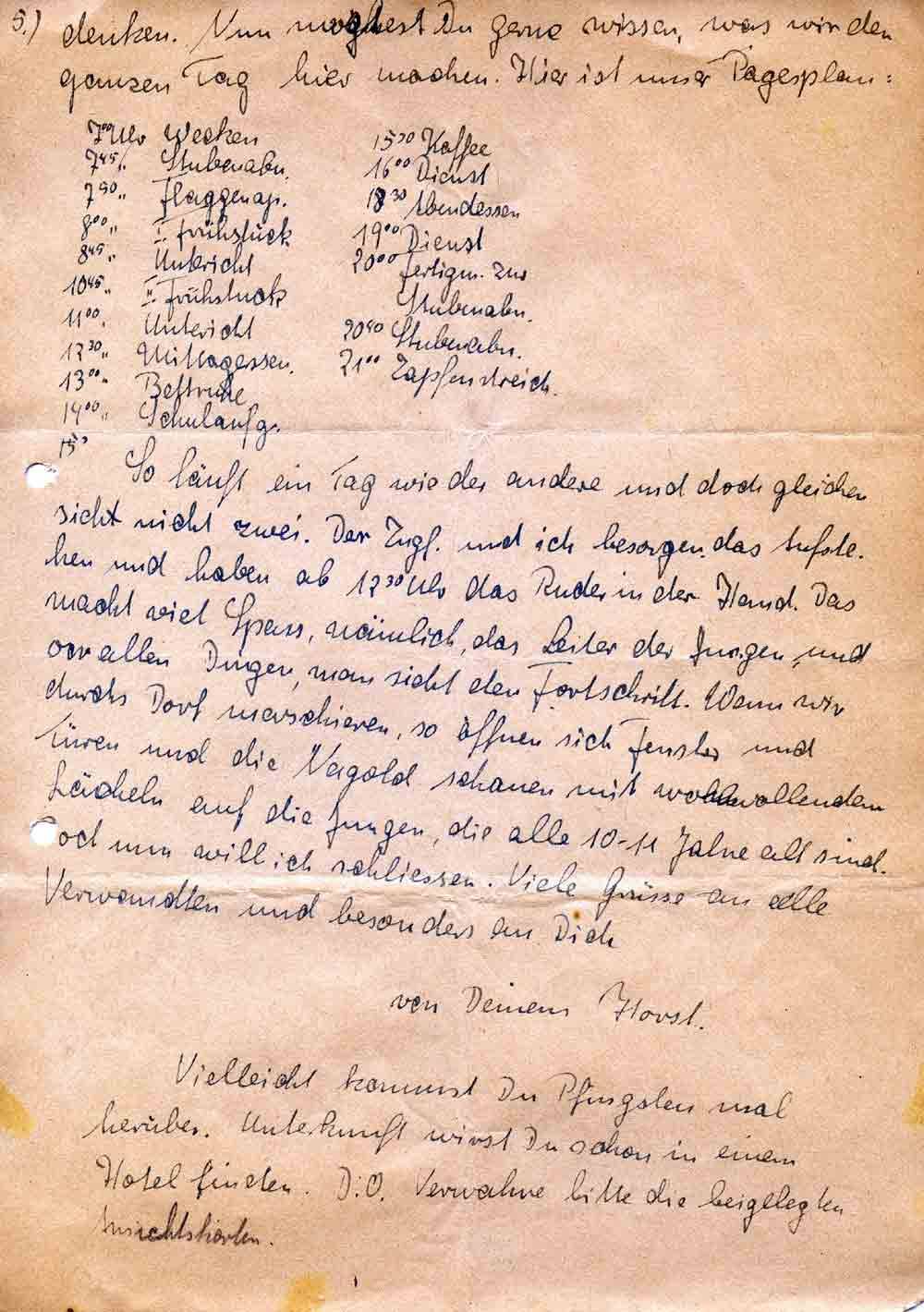 Vielleicht kommst Du Pfingsten mal herüber. Unterkunft wirst Du schon in einem Hotel finden. D.O. Verwahre bitte die beigelegten Ansichtskarten.