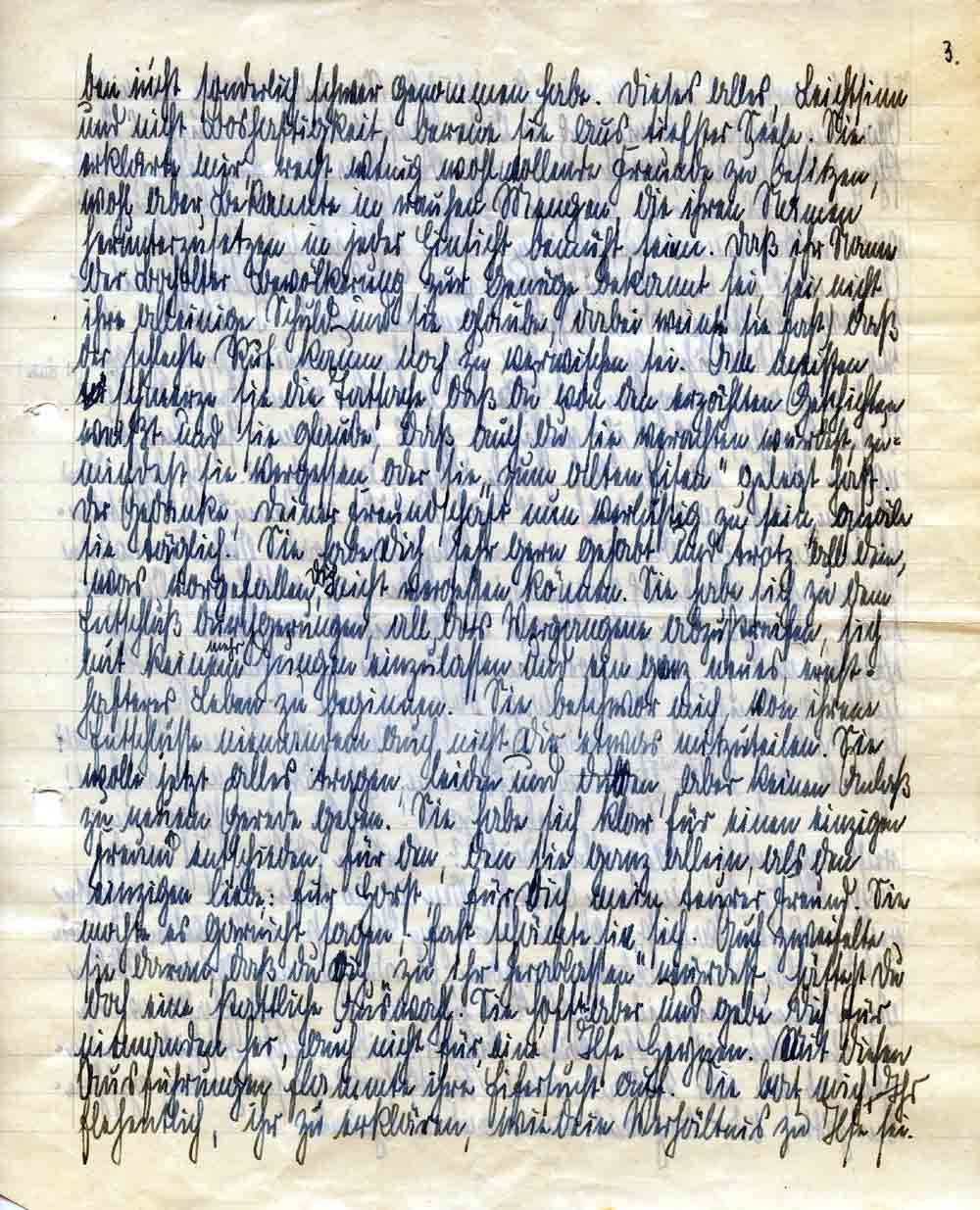 Lieber Horst ich bitte Dich nun, nicht allzu besorgt zu sein und Dir nicht viele Gedanken zu machen ob dieser Dinge. Denk lieber ab und zu an Deine Freunde und an Hilde, die sich nach einem Bild von Dir sehnt. Verzeih mir bitte nochmals, daß ich Dich solange mit der Antwort habe warten lassen, sei in Deinen Briefen bitte etwas vorsichtig (Du kennst ja meine Eltern,) und schreibe bitte nicht als Unterschrift „H. Schmitt“. Lieber Horst, Du kannst Die nicht denken, wie kalt und zurückhaltend das Freunden gegenüber klingt. Daß Du Schmitt mit Hausnamen heißt,