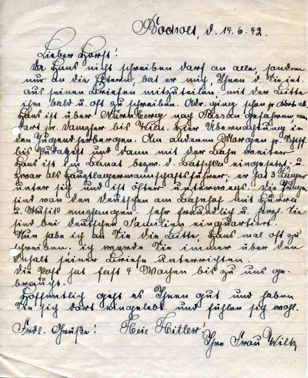 Mutter Wilk an Horst Schmitt, 14. Juni 1942