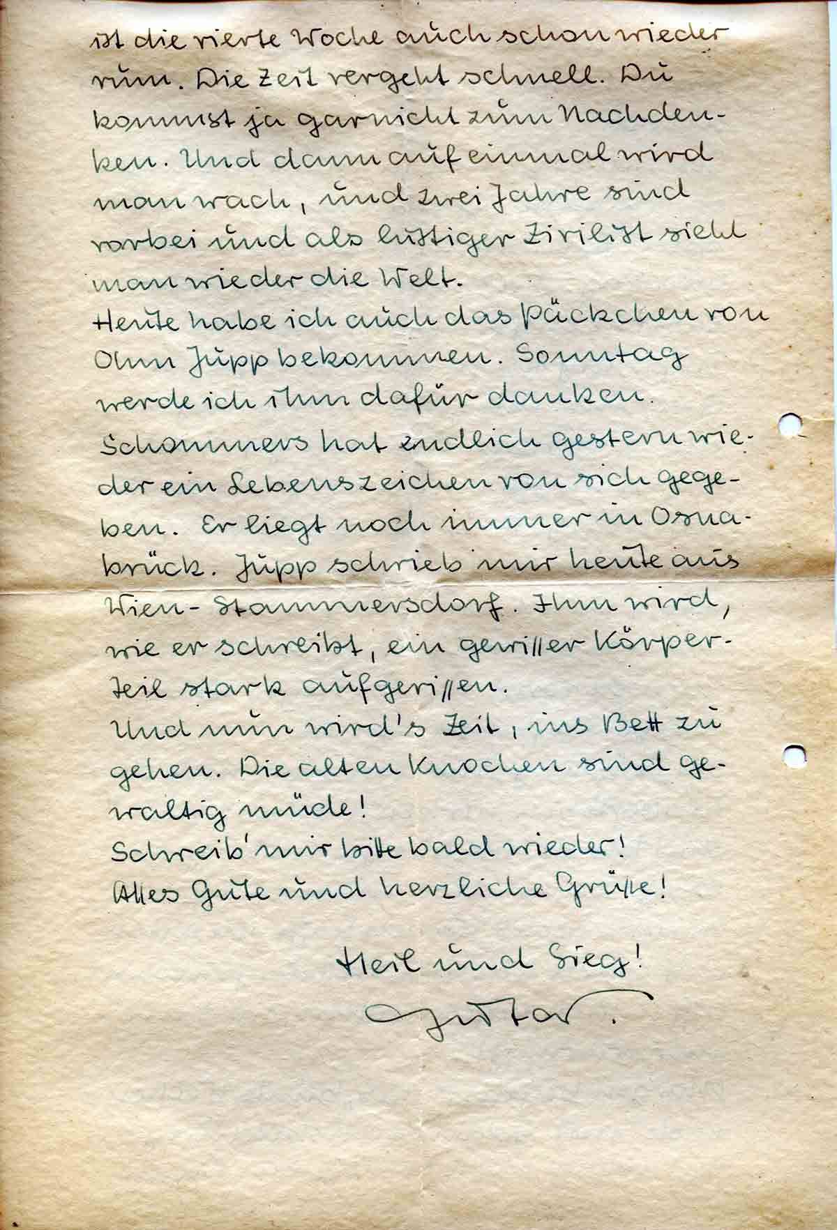 Schommers hat endlich gestern wieder ein Lebenszeichen von sich gegeben. Er liegt noch immer in Osnabrück. Jupp schrieb mir heute aus Wien-Stammersdorf. Ihm wird, wie er schreibt, ein gewisser Körperteil stark aufgerissen.