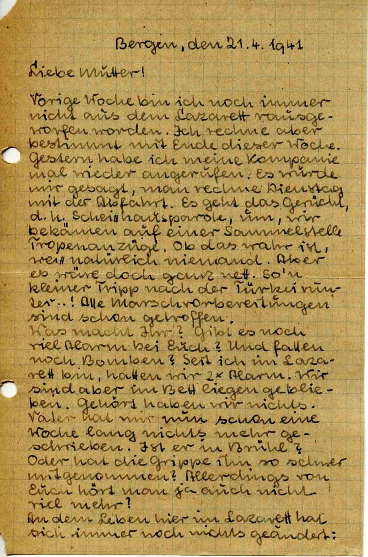 Gustav Roos an Mutter Elisabeth, 21. April 1941
