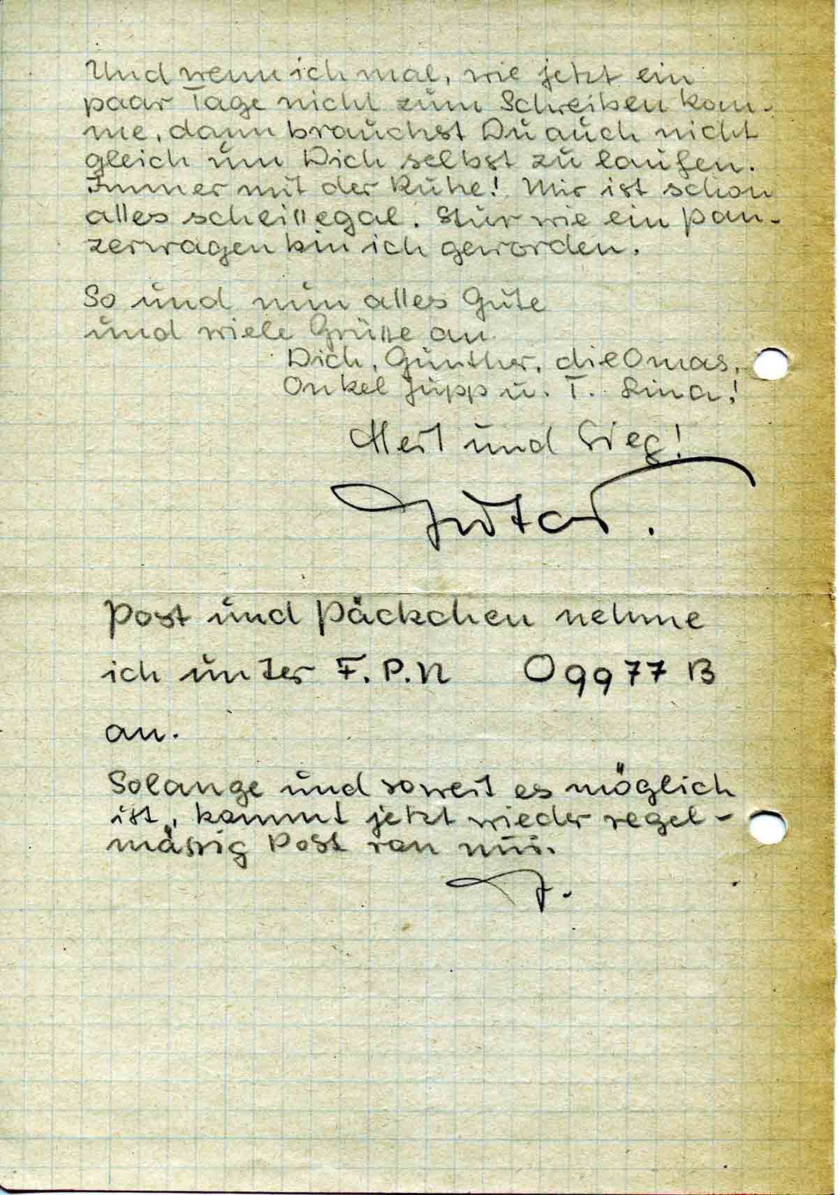 Post und Päckchen nehme ich unter F.P.N. 09977 B an.