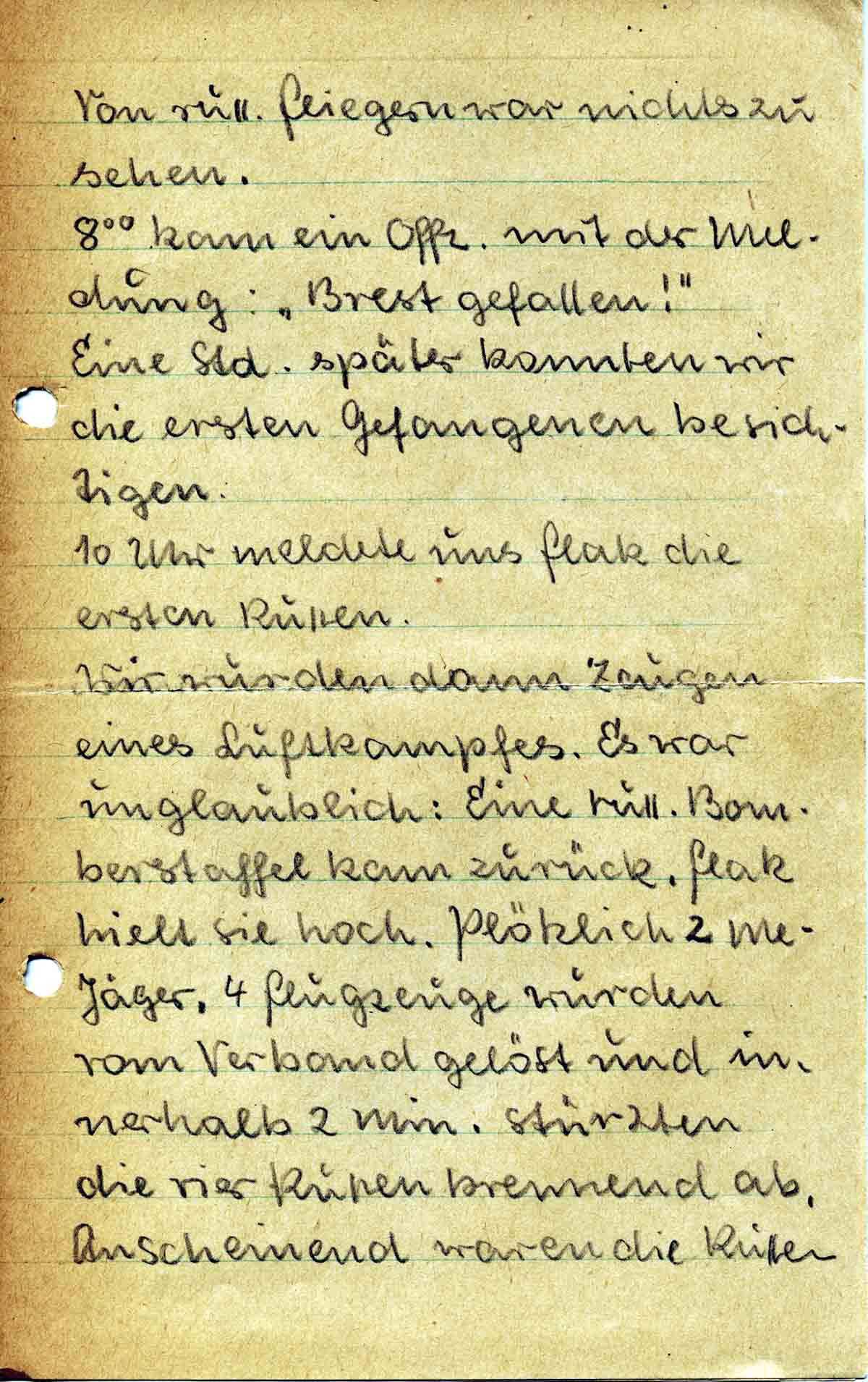 8.00 kam ein Offz. mit der Meldung: „Brest gefallen!“