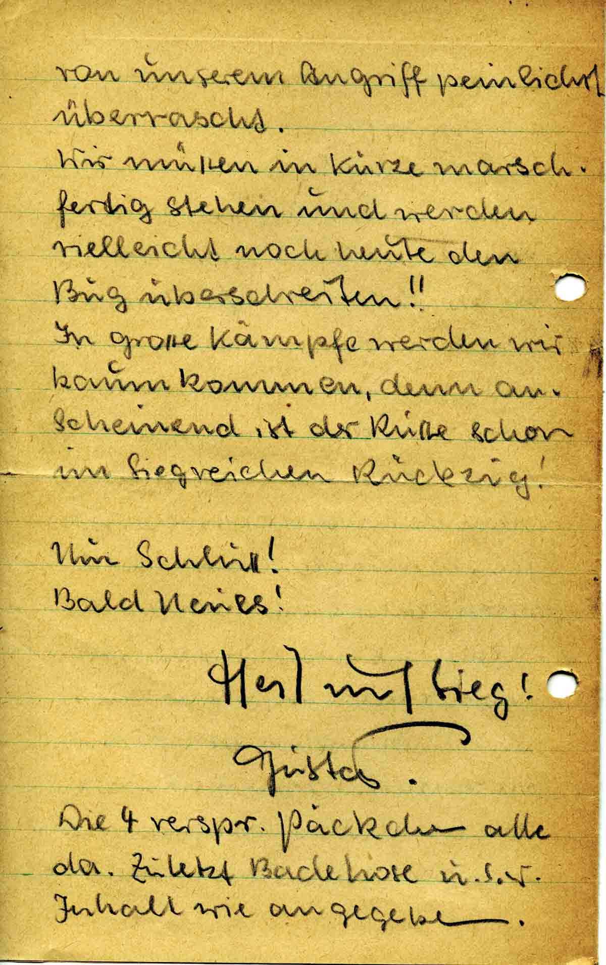 Gustav Roos an Mutter Elisabeth, 22. Juni 1941