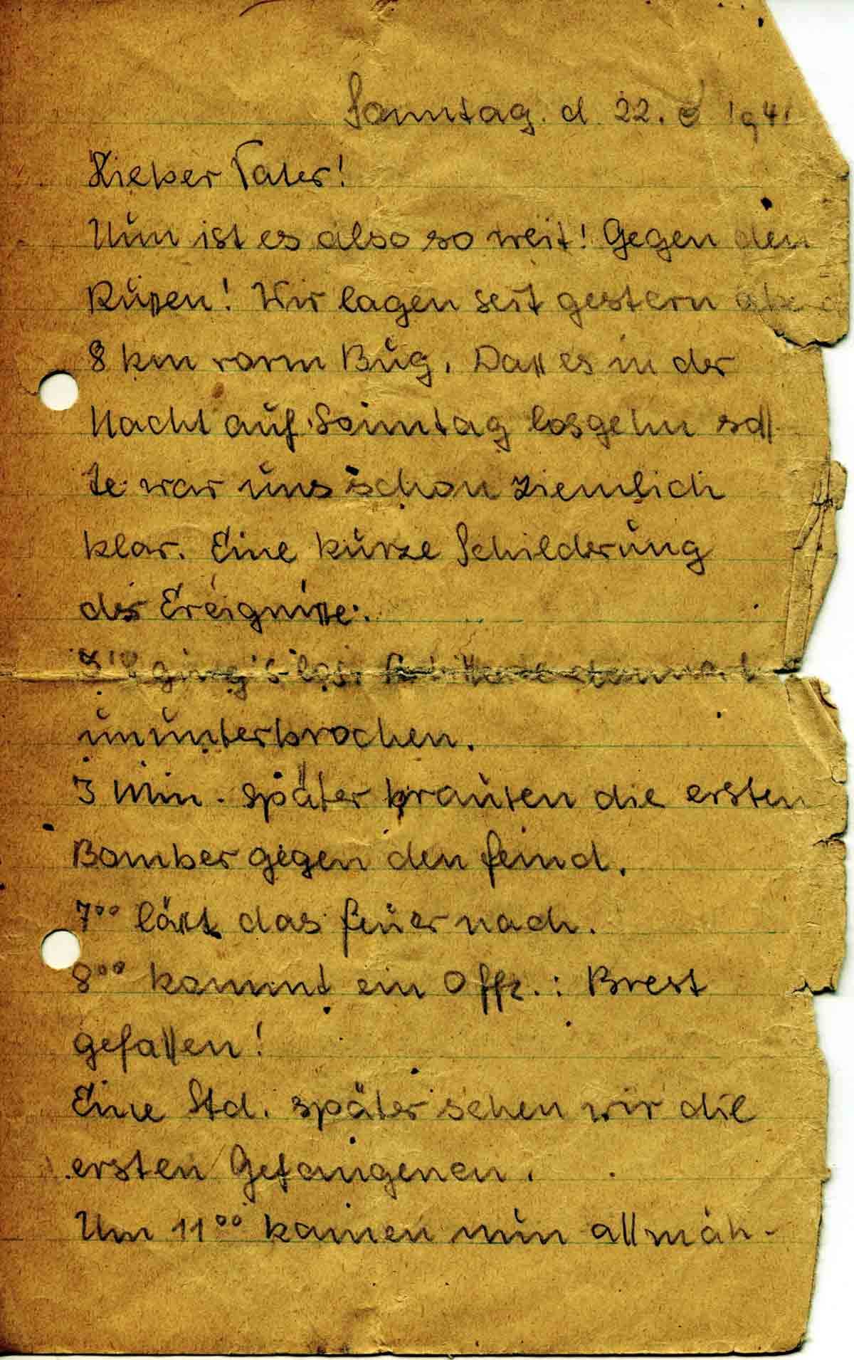 Gustav Roos an Vater Toni, 22. Juni 1941