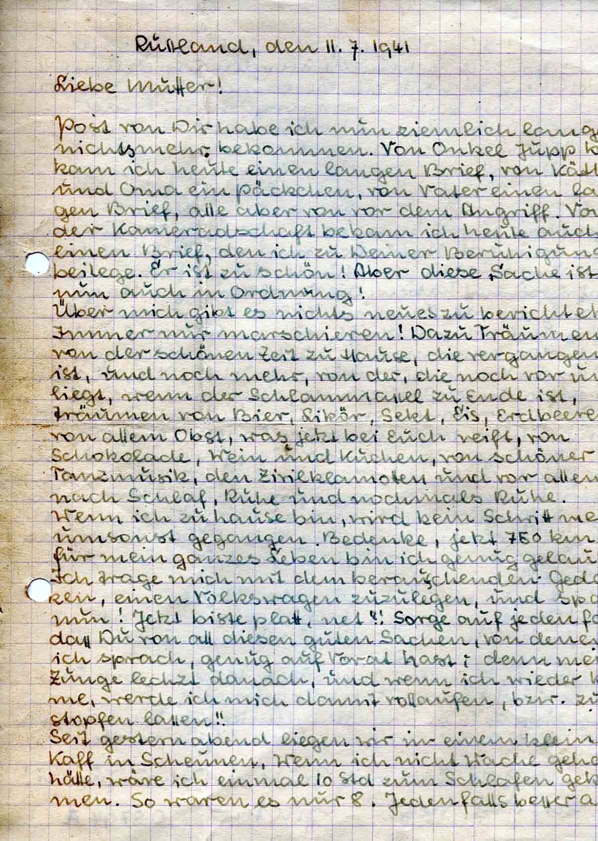 Gustav Roos an Mutter Elisabeth, 11. Juli 1941