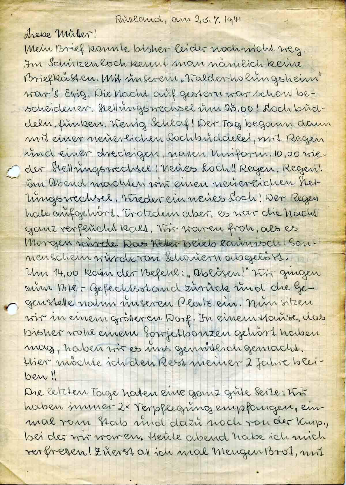 Gustav Roos an Mutter Elisabeth, 26. Juli 1941