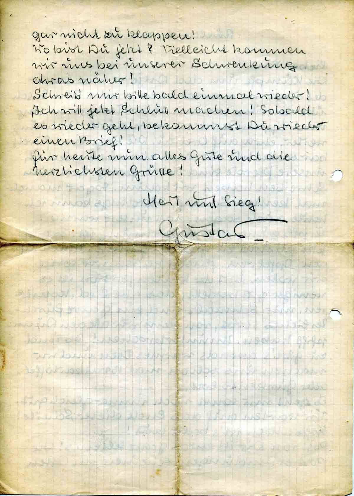 Schreib’ mir bitte bald einmal wieder! Ich will jetzt Schluss machen! Sobald es wieder geht, bekommst Du wieder einen Brief!