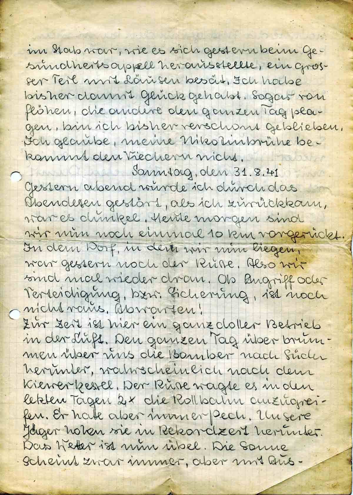 Sonntag, den 31.8.41
