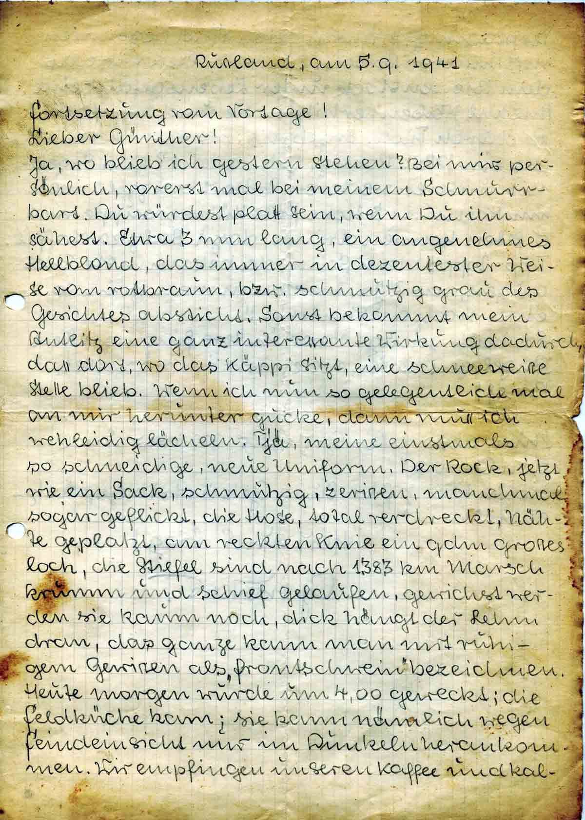 Gustav Roos an Bruder Günther, 5. September 1941