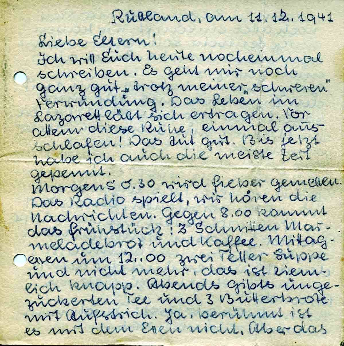 Gustav Roos an seine Eltern, 11. Dezember 1941