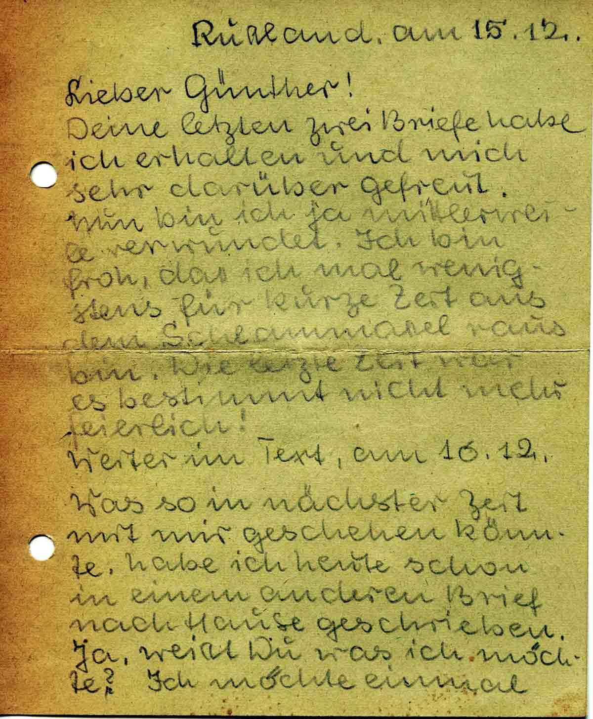 Gustav Roos an Bruder Günther, 15. Dezember 1941