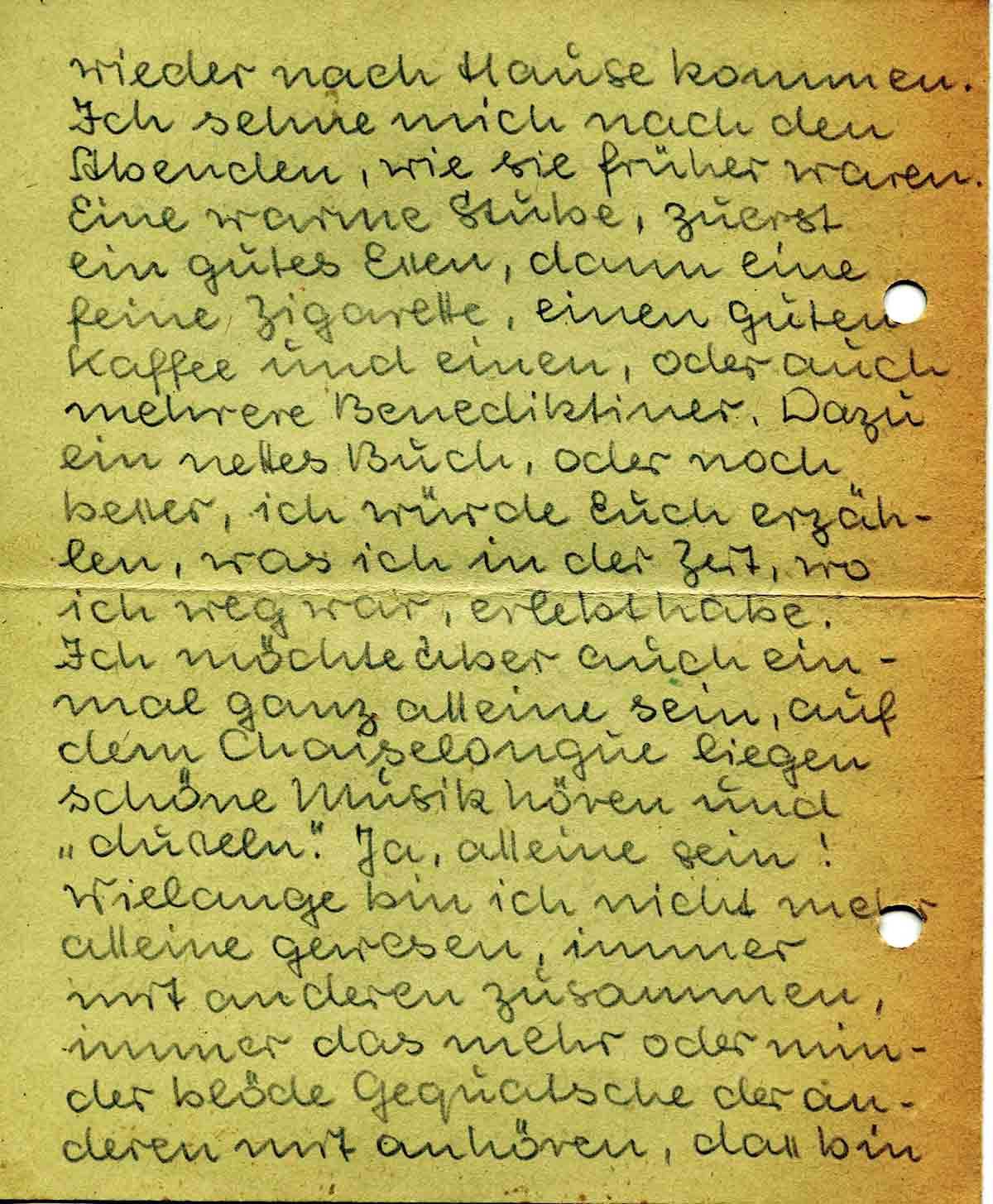 Was so in nächster Zeit mit mir geschehen könnte, habe ich heute schon in einem anderen Brief nach Hause geschrieben. Ja, weisst Du was ich möchte? Ich möchte einmal