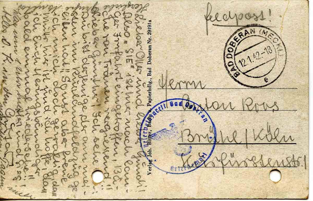 Gustav Roos an Vater Toni und Bruder Günther, 12. Januar 1942 (Poststempel)