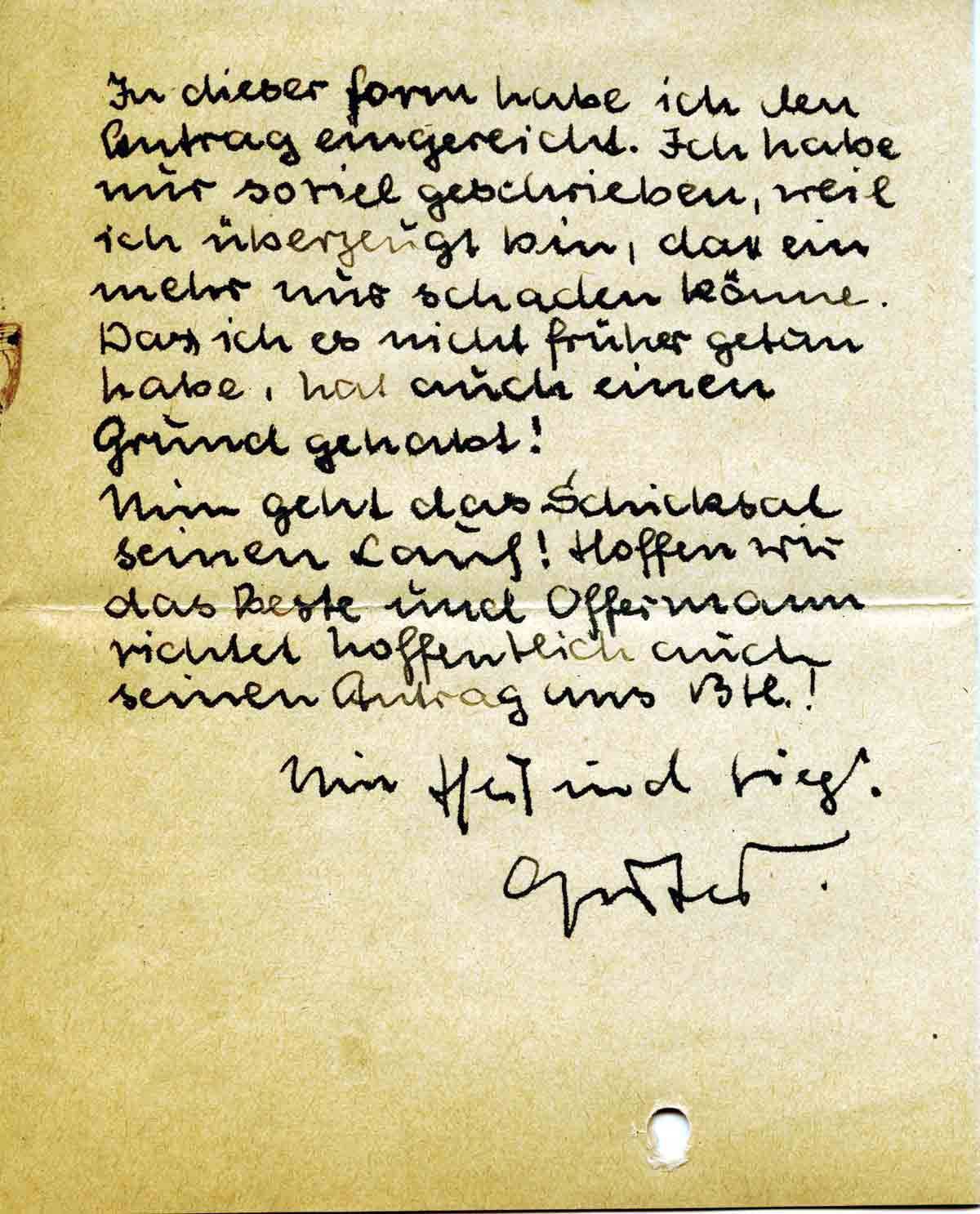 In dieser Form habe ich den Antrag eingereicht. Ich habe nur soviel geschrieben, weil ich überzeugt bin, dass ein mehr nur schaden könne. Dass ich es nicht früher getan habe, hat auch einen Grund gehabt!