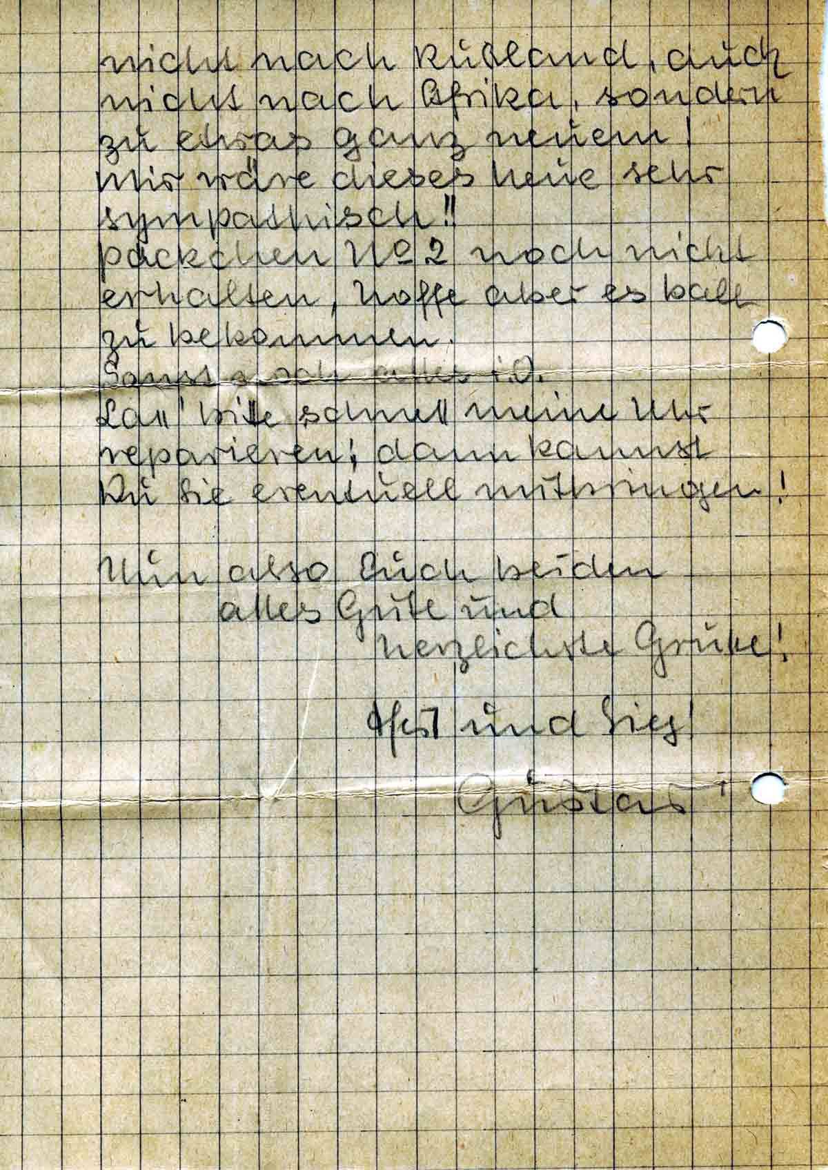 Aber anscheinend hat man Leute notwendig, also k.v.! Na, man kann nichts dagegen machen, also wieder nach dem alten Wahlspruch: „Das kann doch einen Landser nicht erschüttern!!“
