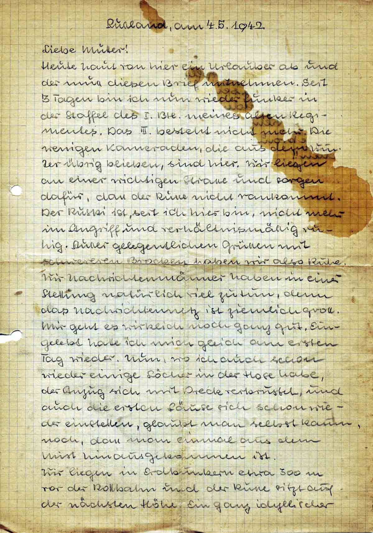 Gustav Roos an Mutter Elisabeth, 4. Mai 1942