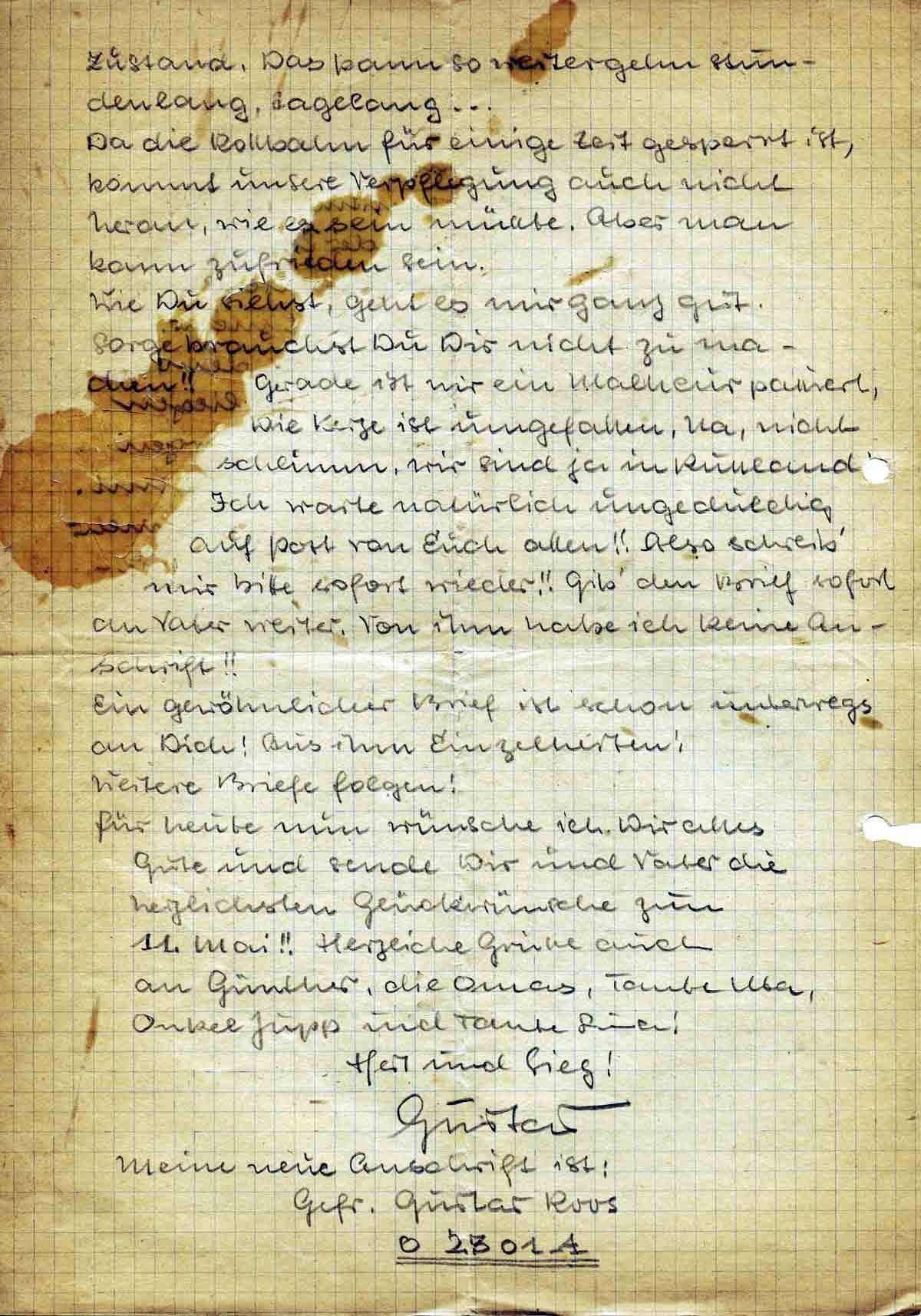 Für heute nun wünsche ich Dir alles Gute und sende Dir und Vater die herzlichsten Glückwünsche zum 11. Mai!! Herzliche Grüsse auch an Günther, die Omas, Tante Uta, Onkel Jupp und Tante Sina!